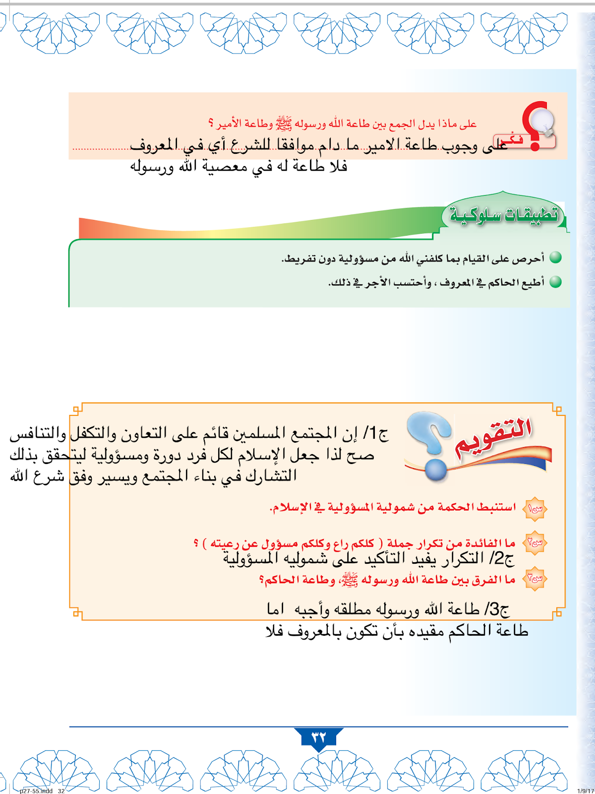 حل كتاب الفقه للصف الثالث المتوسط الفصل الدراسي الاول الاجابة هي التكرار يفيد التاكيد على شمولية المسؤولية. ما الفائدة من تكرار جملة كلكم راع وكلكم مسؤول عن رعيته 1 2k مشاهدة س ئل نوفمبر 5 2015 بواسطة مجهول. الحل هو التكرار يفيد التاكيد على شمولية المسؤولية. سمعت رسول الله ﷺ يقول.