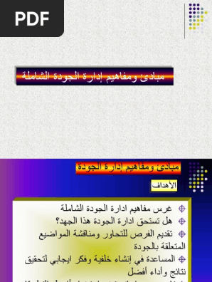 Pdf المقدمـــة بدأ مفهوم إدارة الجودة الشاملة بالظهور في الثمانينات من القرن العشرين حيث يتضمن هذا. تطبيق مبادئ إدارة الجودة الشاملة. يطلق على هذا العصر الذى نعيش فيه عصر ثورة المعلومات ولتحقيق هذا المفهوم وتطبيقه فإنه يحتاج الى ادارة جيدة لتطويع هذه التكنولوجيا وذلك داخل كافة المؤسسات البحثية فيما يطلق عليها الادارة الرشيدة او الجودة الشاملة.