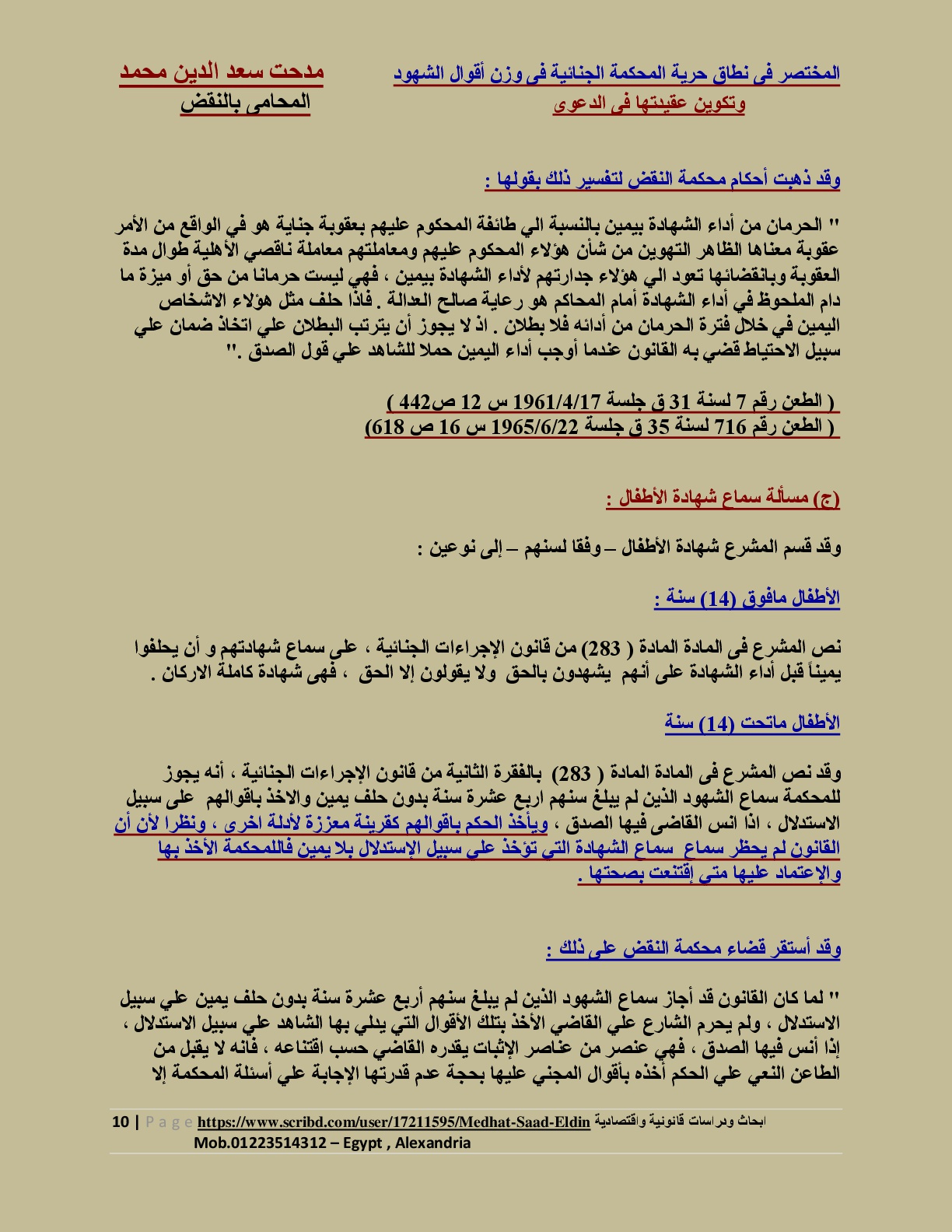 حقوق الشاهد شهادة الشهود إن شهادة الشهود تخضع إلى مبدأ القناعة الوجداني ة للقاضي وللقاضي.