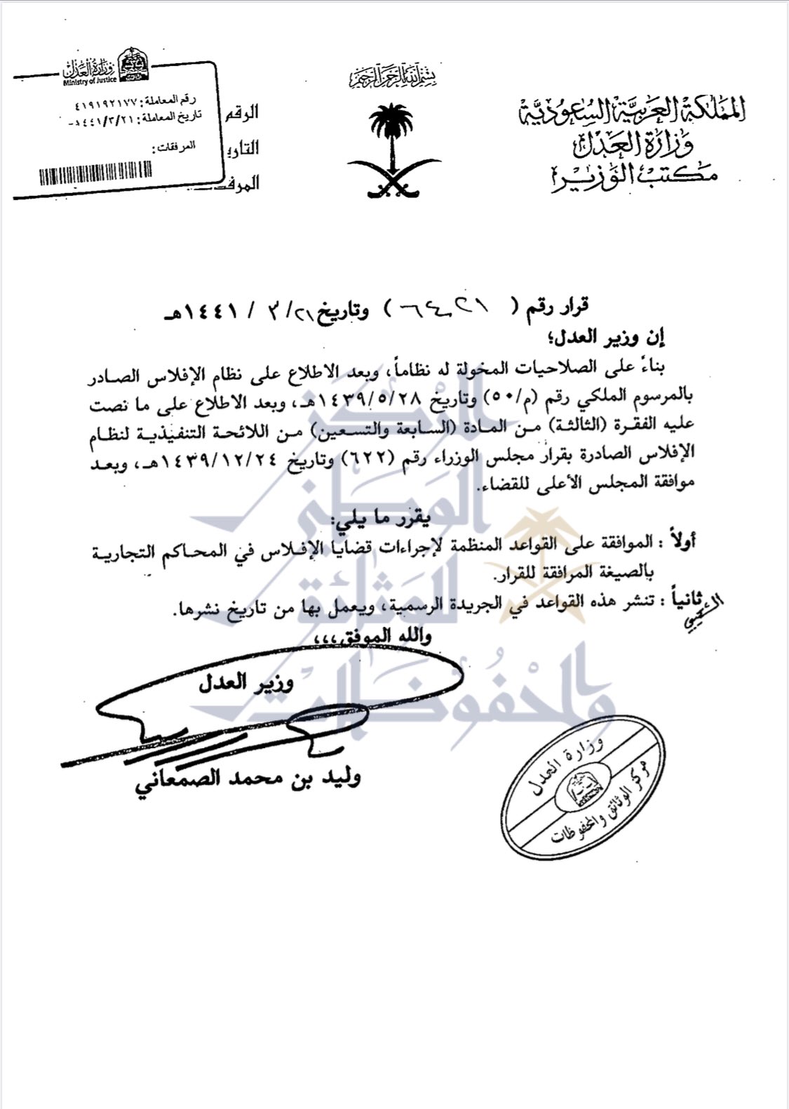 مركز الوثائق والمحفوظات بوزارة العدل